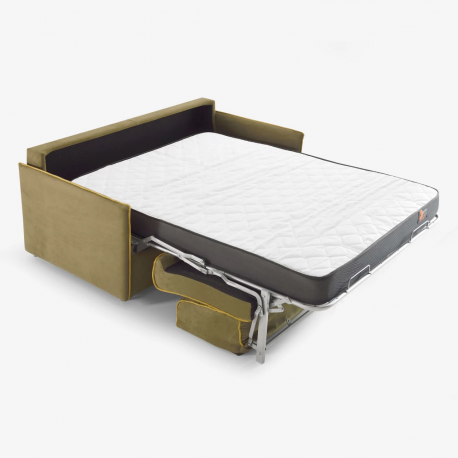 El sofá cama Loki, elaborado por el fabricante Francés Bañón, es el producto ideal para los que buscan optimizar el espacio disponible en su hogar al máximo sin rechazar a la comodidad y al confort. Cuenta con colchón de alta resiliencia de 30 kilogramos de densidad, de 190 centímetros de largo por 12 centímetros de grosor, con posibilidad de que sea viscoelástico y de 15 centímetros de grosor.